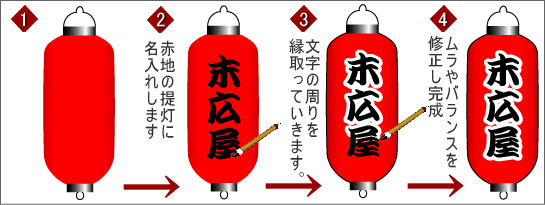 赤提灯名入れビニール提灯紅染めと通常仕上げの違い (※赤以外でも作成可能です。)